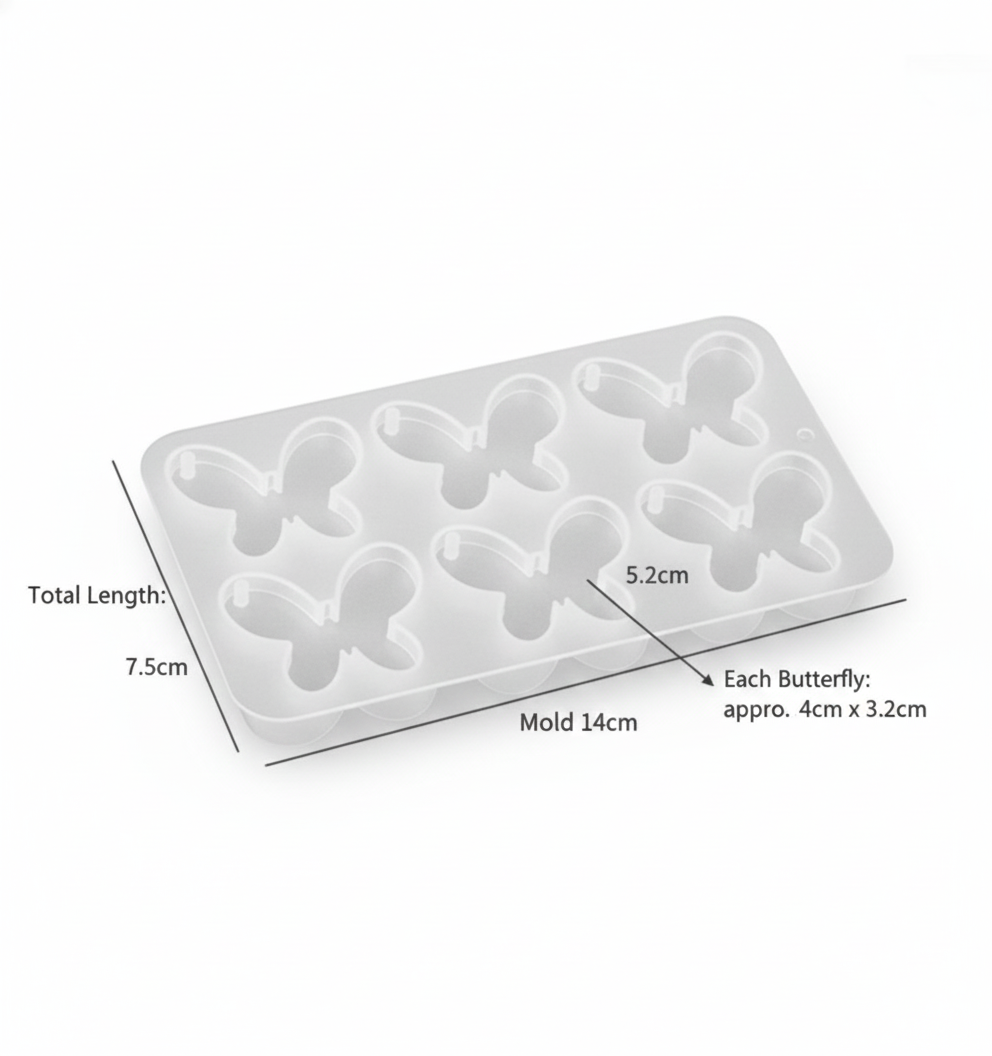 Create beautiful butterfly pendants and keychains with this high-quality silicone mold. Designed with 6 identical butterfly cavities, this mold is perfect for making multiple pieces at one time—ideal for bulk production and small businesses.